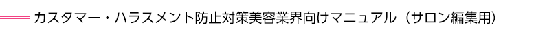 本マニュアルは、近年深刻化しているカスタマー・ハラスメントへの対応について、美容業界の実情を踏まえ、東京都のガイドラインや関係法令等を参考に、組合としての考え方や対応の方向性を示しています。