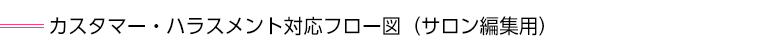 カスタマー・ハラスメントが発生した際の対応手順を、フロー図として整理した資料です。 本データはPowerPoint形式のため、各サロンの体制やルールに合わせて編集し、独自の対応フローとしてご活用いただけます。